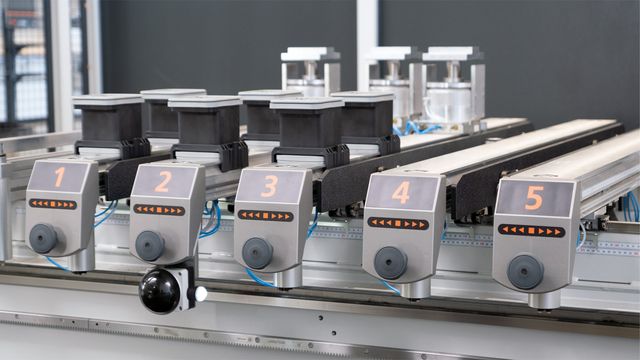 All drills and units achieve machining lengths of 3,680 to 7,280 mm in the X direction and edge routing dimensions up to 2,100 mm. The extreme machining height of 300 millimeters from the top of the suction cups with a generous Z stroke of 565 millimeters offers sufficient clearance even for complex workpiece.